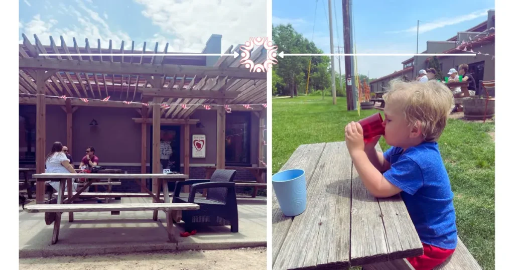 After the farm, we headed to Mount Horeb for a late lunch at Brix Cider. It’s a true farm-to-table spot, with two-thirds of the ingredients sourced from Wisconsin farmers. Everything we’ve ordered there has been amazing. They have outdoor seating that’s perfect for families, and the inside space is roomy and very kid-friendly.